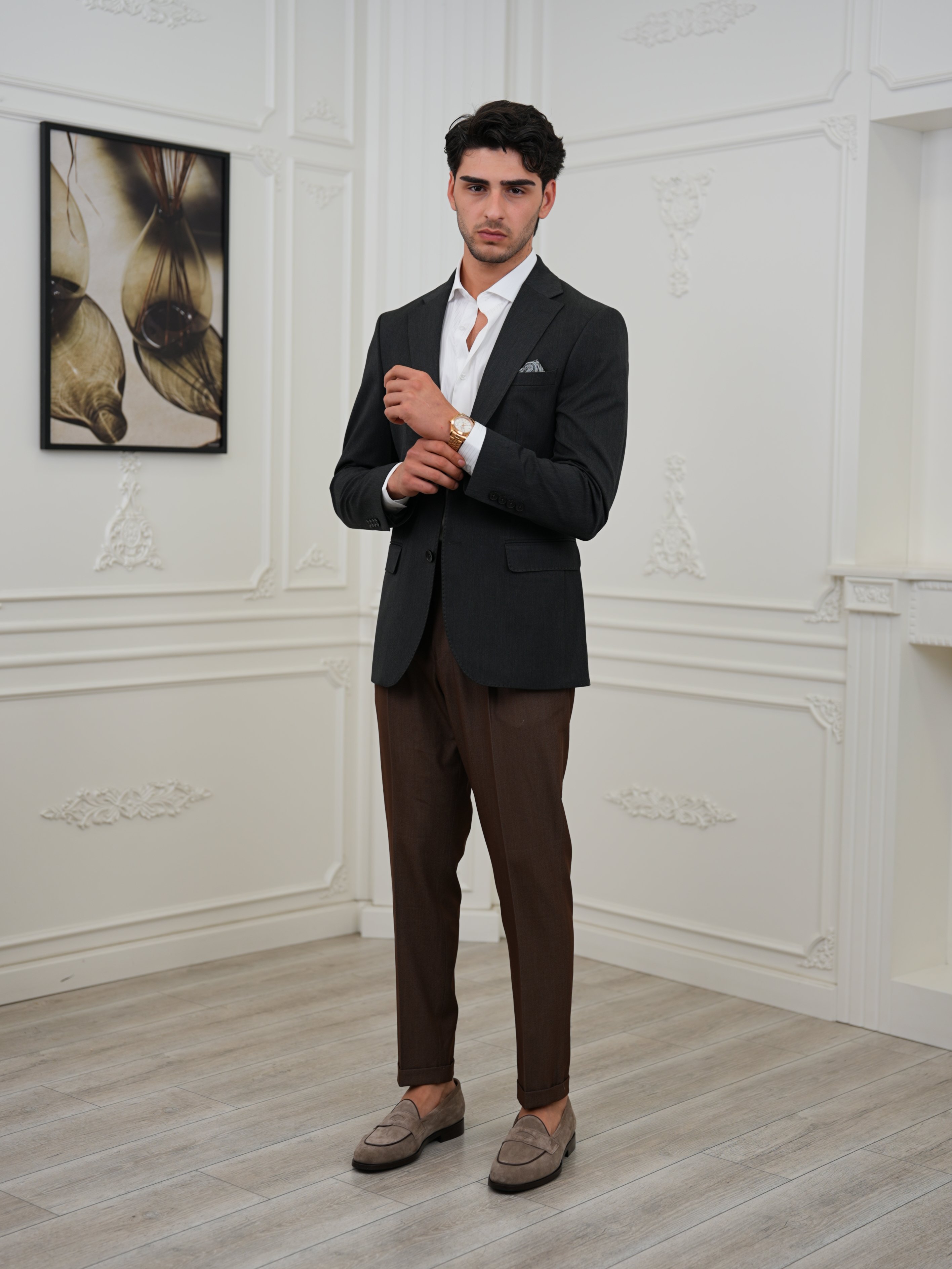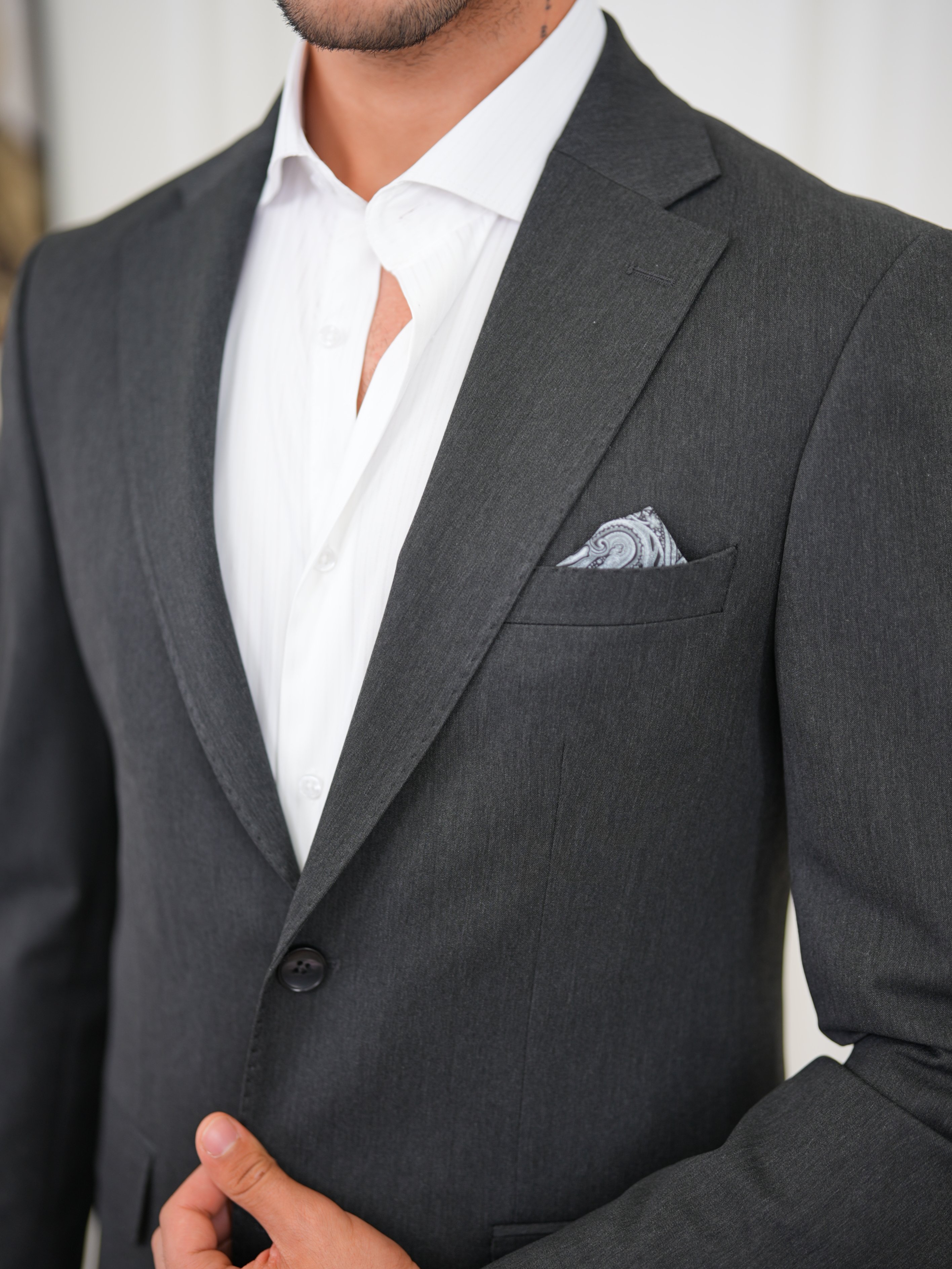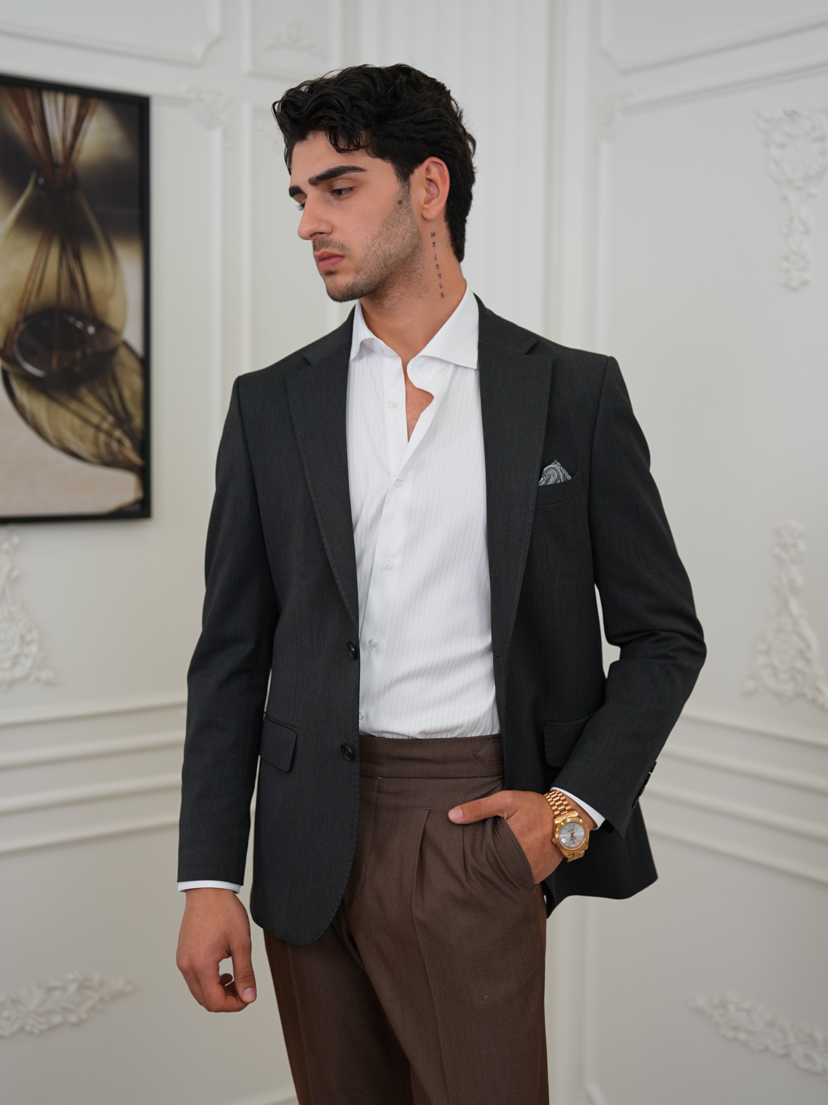 Premium İtalyan Stil Slim Fit Erkek Punto Dikişli Yarım Astarlı Ceket - Antrasit (XPRZCOM8330-27)