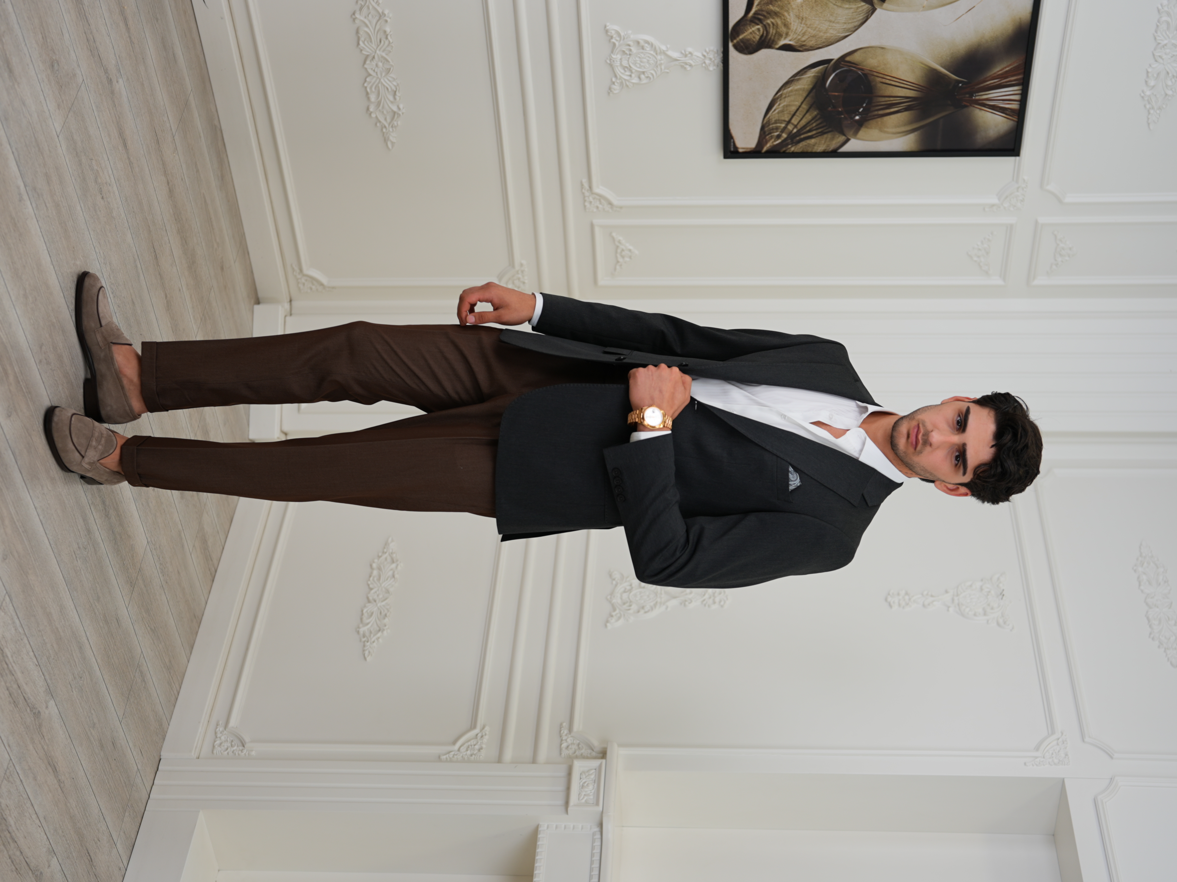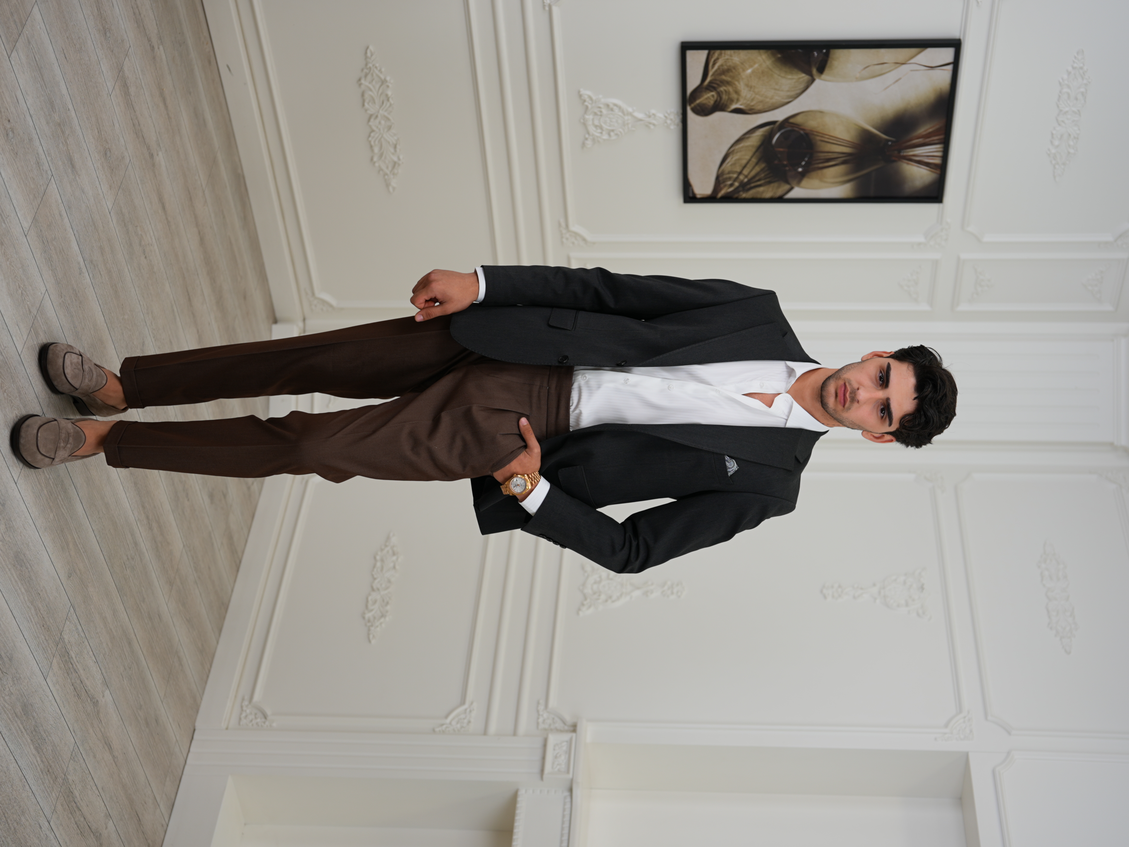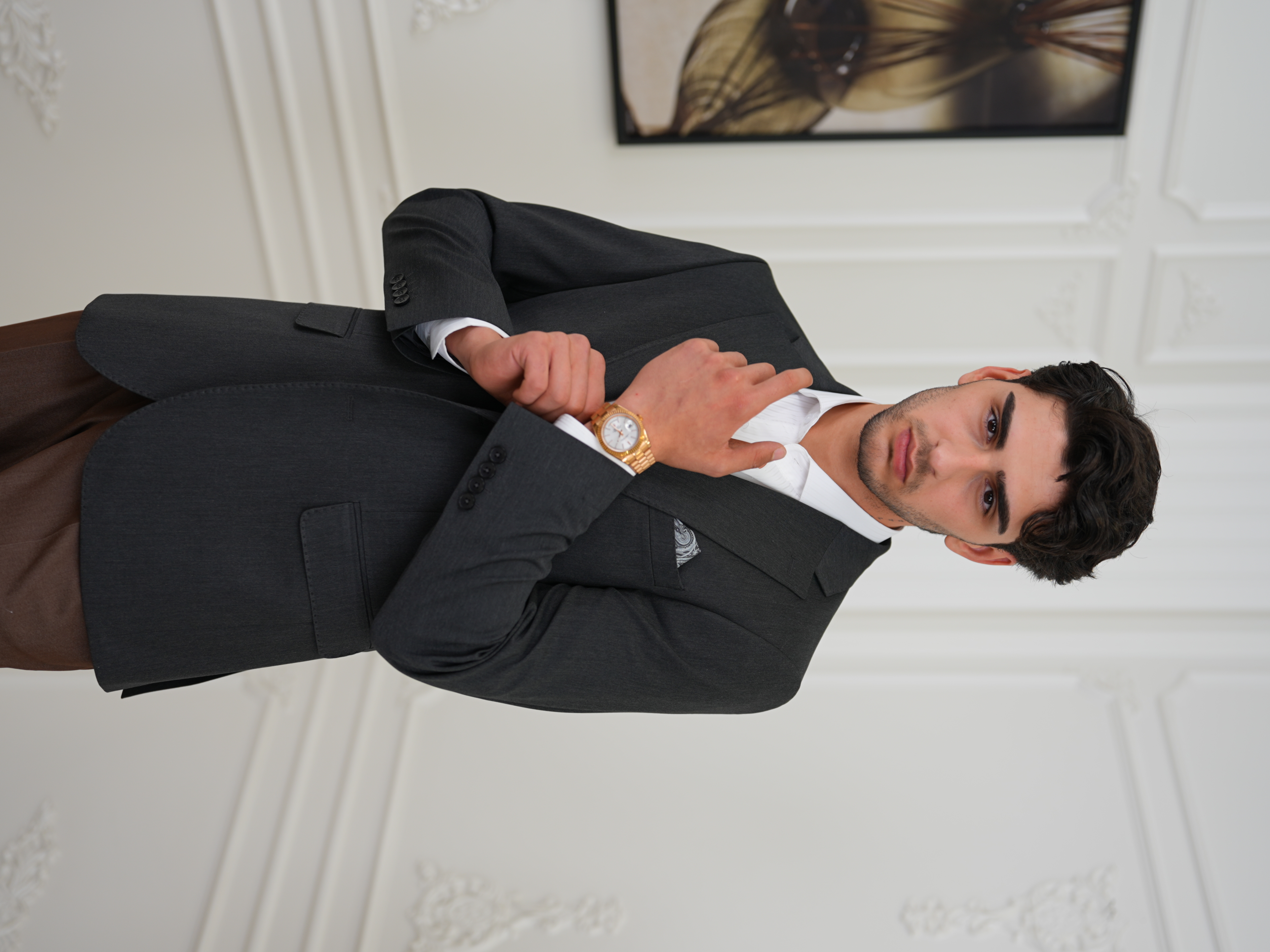 Premium İtalyan Stil Slim Fit Erkek Punto Dikişli Yarım Astarlı Ceket - Antrasit (XPRZCOM8330-27)