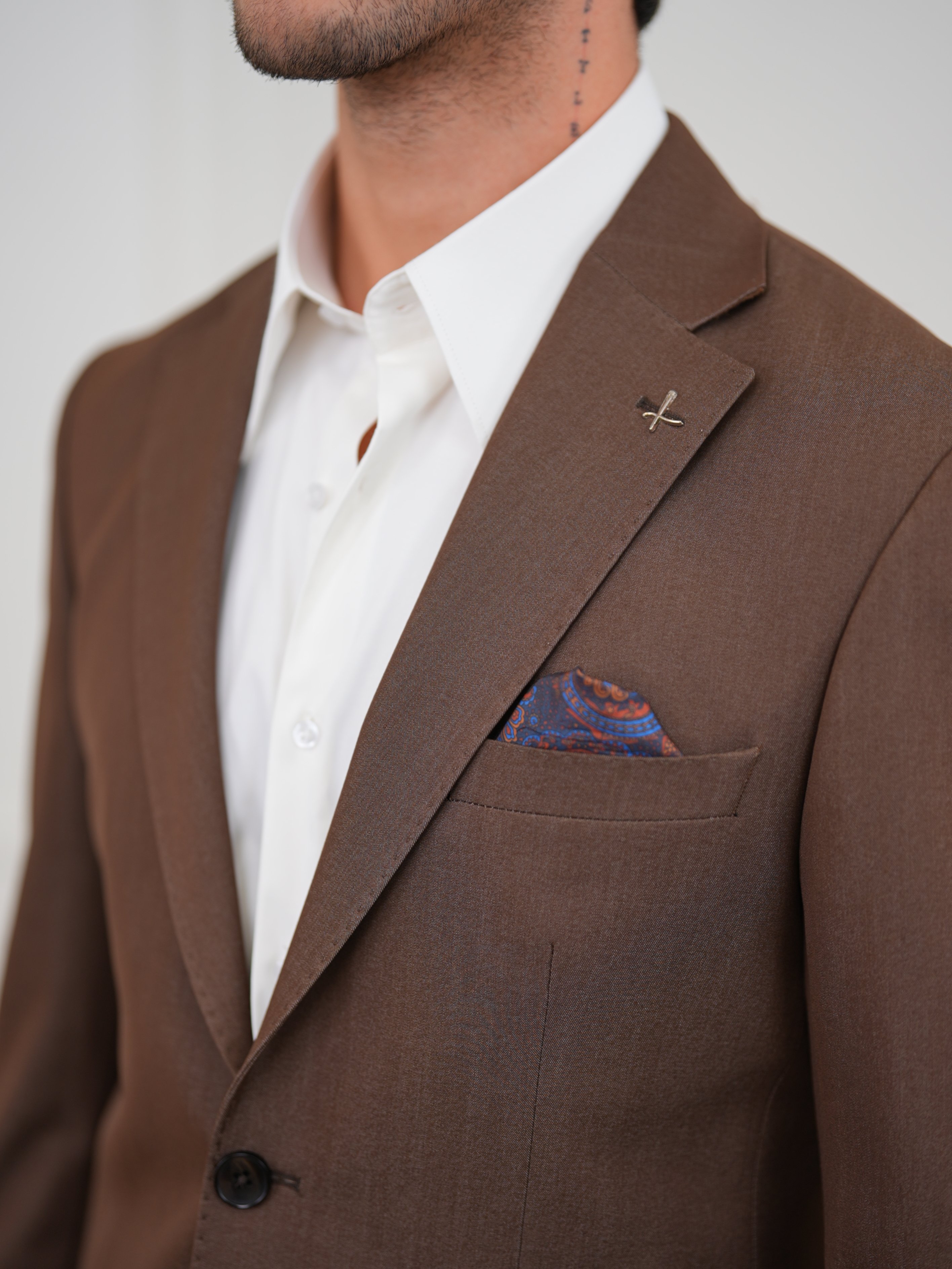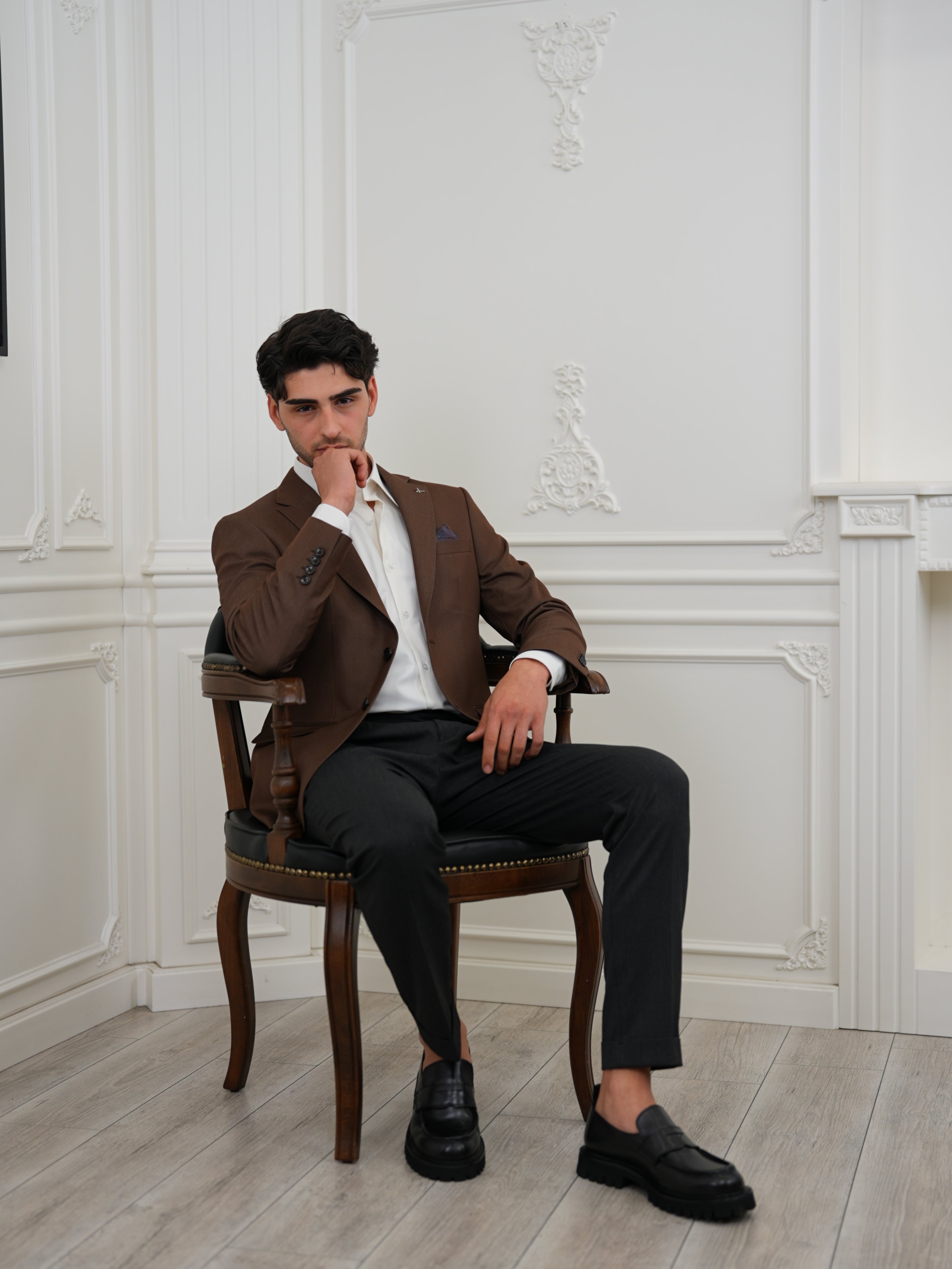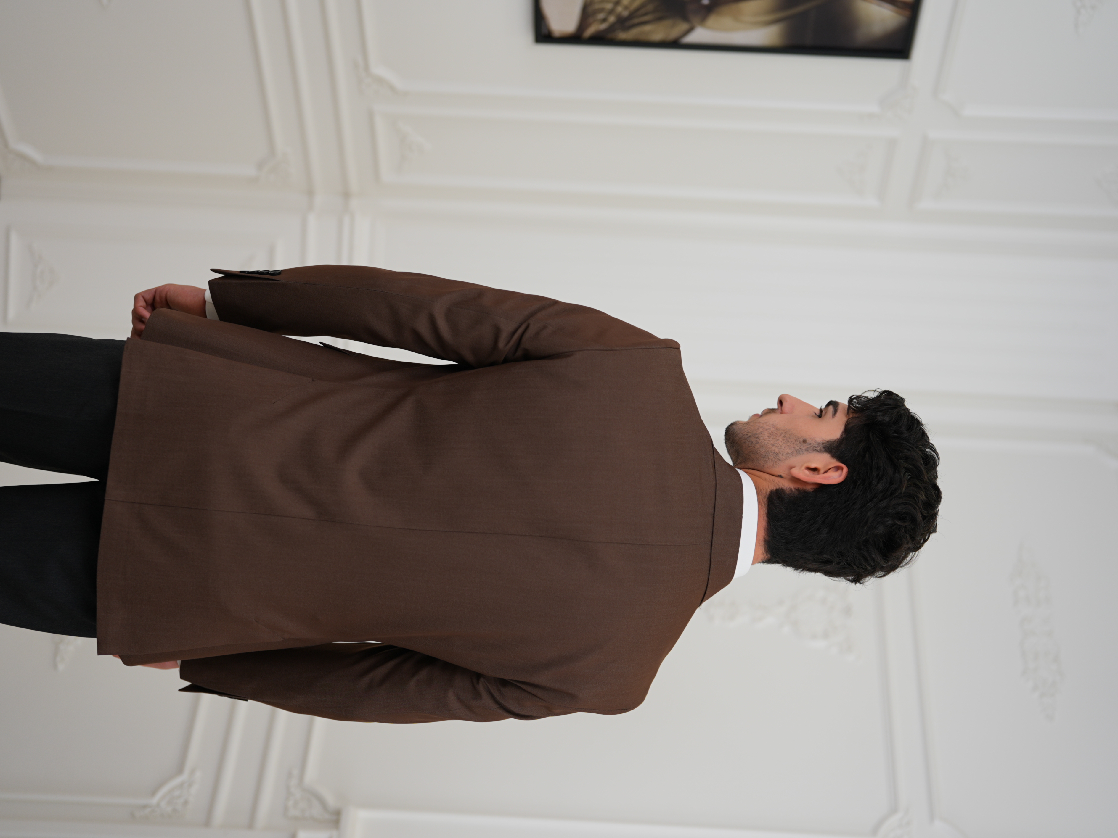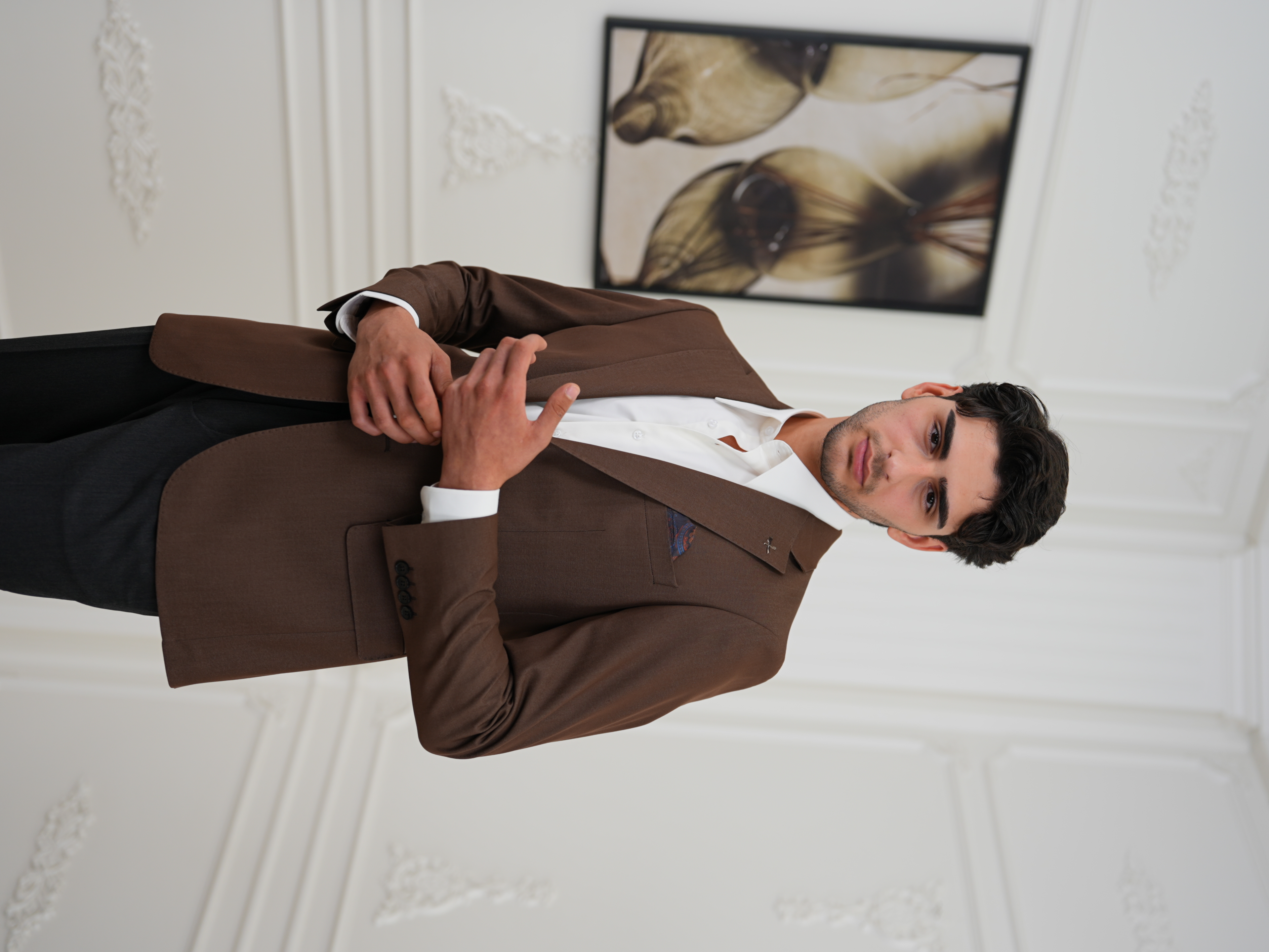 Premium İtalyan Stil Slim Fit Erkek Punto Dikişli Yarım Astarlı Ceket - Kahve (XPRZCOM8330-05)