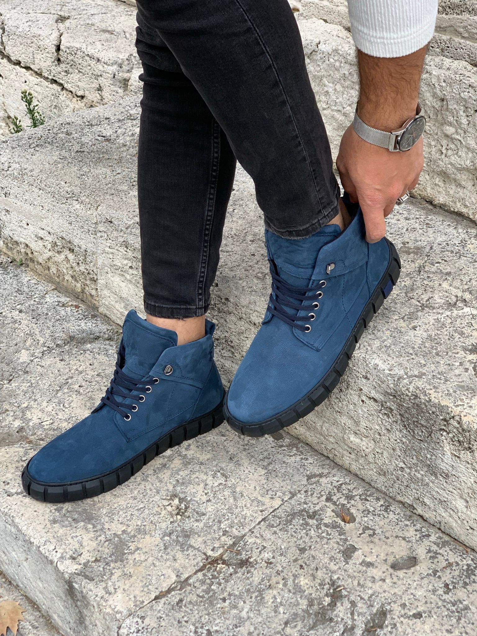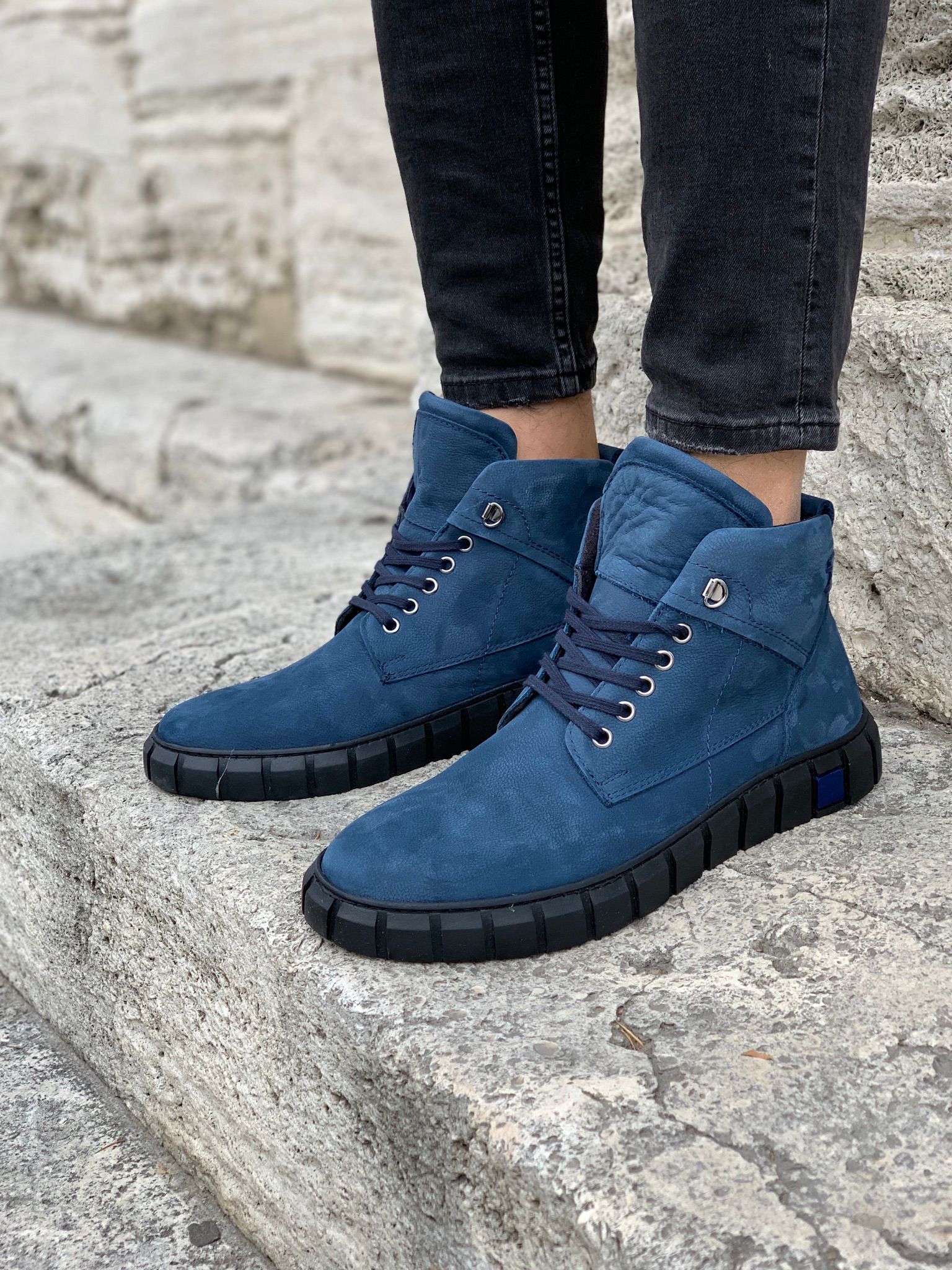 Bağcıklı Hakiki Deri Bot-Mavi (XPRZY086-82)